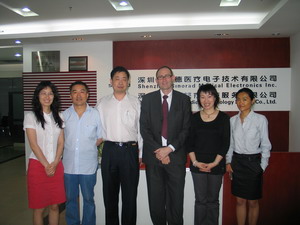 會議期間,前來公司參觀指導(dǎo)的嘉賓絡(luò)繹不絕,主要是重要客戶以及國內(nèi)外幾家磁共振生產(chǎn)商的代表。作為中國唯一一家生產(chǎn)磁共振配套的專業(yè)視頻、音頻產(chǎn)品的廠家,美德公司憑借精專的產(chǎn)品開發(fā)能力和優(yōu)質(zhì)的服務(wù),在業(yè)界享有良好的口碑,除在國內(nèi)擁有眾多的用戶外,還開始與國內(nèi)外磁共振廠商在產(chǎn)品配套和訂制特殊需求的產(chǎn)品方面有著良好的合作前景,借此博覽會在深舉辦期間,來公司參觀指導(dǎo),洽談合作。其中有西門子(中國)有限公司上海分公司的采購部總經(jīng)理Roland先生和助理謝山曉女士,西門子磁共振有限公司的技術(shù)專家們,北京協(xié)和醫(yī)院、河南省人民醫(yī)院、四川大學(xué)華西醫(yī)院的專家們、北京大學(xué)醫(yī)學(xué)物理專業(yè)的包教授、上??ɡ辗?、浙江嘉恒公司的同道們……,他們一一聽取公司領(lǐng)導(dǎo)的公司現(xiàn)狀和未來的發(fā)展策略,參觀工作車間,考察產(chǎn)品質(zhì)量控制體系,對合作前景充滿信心。