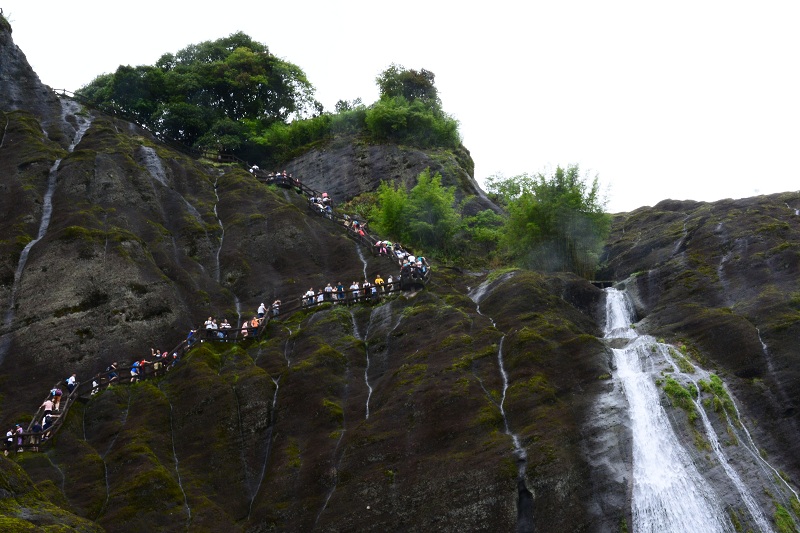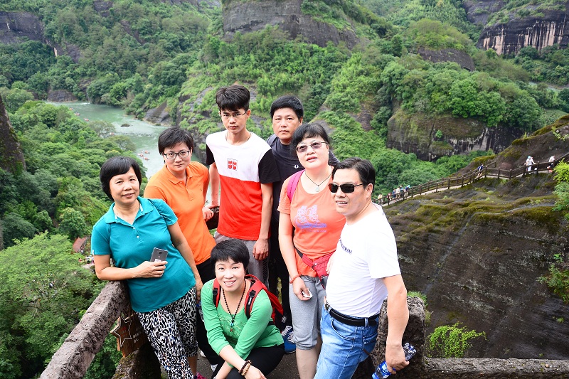 清晨,我們進(jìn)入武夷山景區(qū),登上天游峰,感受它的險峻俏麗,厚重與質(zhì)樸。下午,我們乘著竹筏,在九曲溪緩緩漂流,小雨飄到臉上,甚是輕柔涼爽。一睹大王峰、玉女峰、虎嘯巖的風(fēng)采,靜靜地享受那份愜意與悠閑。我們又來到一線天,感受大自然鬼斧神工造化,在夾縫中攀巖,挑戰(zhàn)自我。晚上,我們欣賞了大型實景演出《印象大紅袍》,在一場華麗的演出中深深地領(lǐng)略閩西茶文化,在研習(xí)茶文化的同時思考人生,啟迪自我。次日,我們又觀看了大紅袍茶樹和水簾洞等景點。